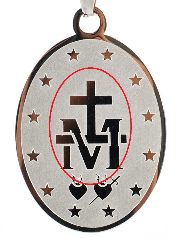 7) The interweaving of Mary's initials and the cross symbolizes Mary's close involvement with her son, Jesus Christ. It represents Mary's part in our salvation and her role as Mother of the Church.